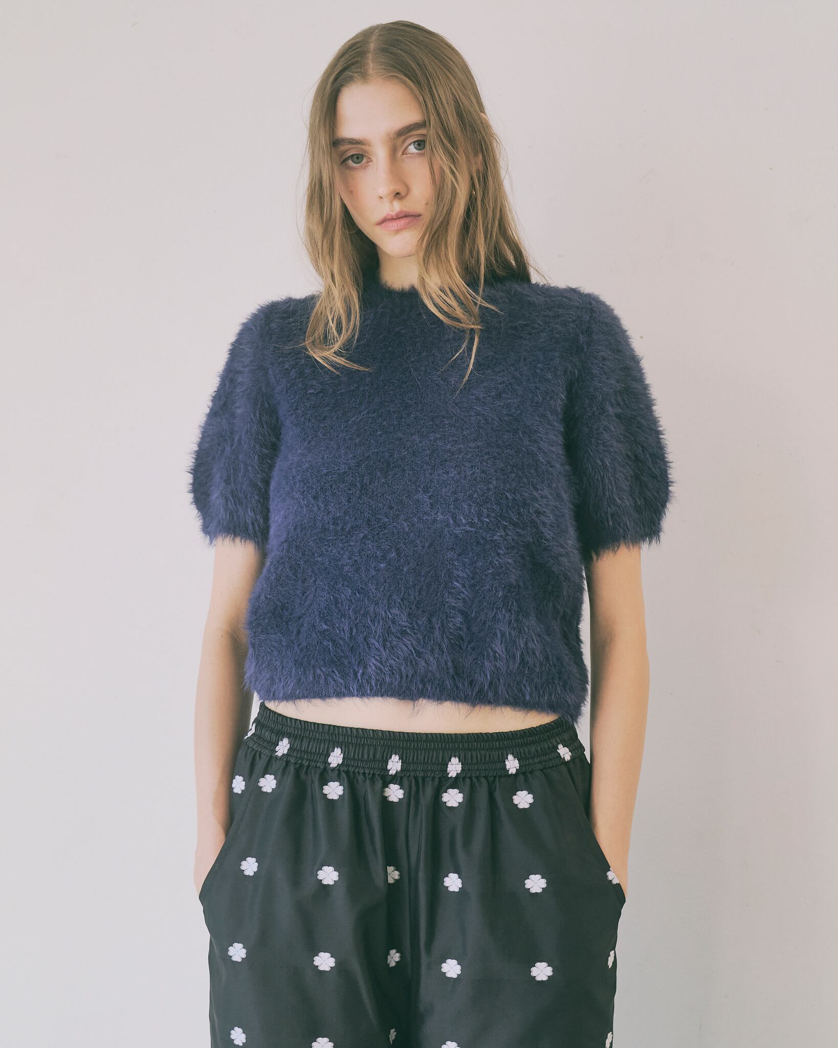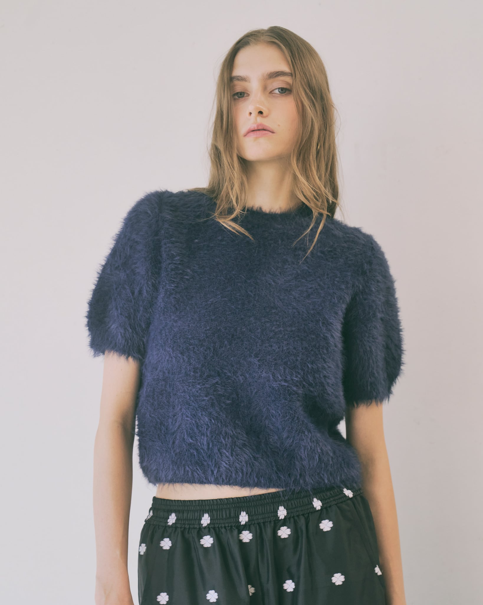 毛足のあるふんわりした素材感が女性らしいシャギーニット。チクチクしない肌ざわりで、⼼地よく包まれるような着⽤感が魅⼒です。袖は少し丸みを持たせたデザインに仕⽴てることで、腕を細く⾒せつつデザイン性をプラス。丸みのあるシルエットは、肩まわりに抜け感をつくりながらも上品さを保ちます。