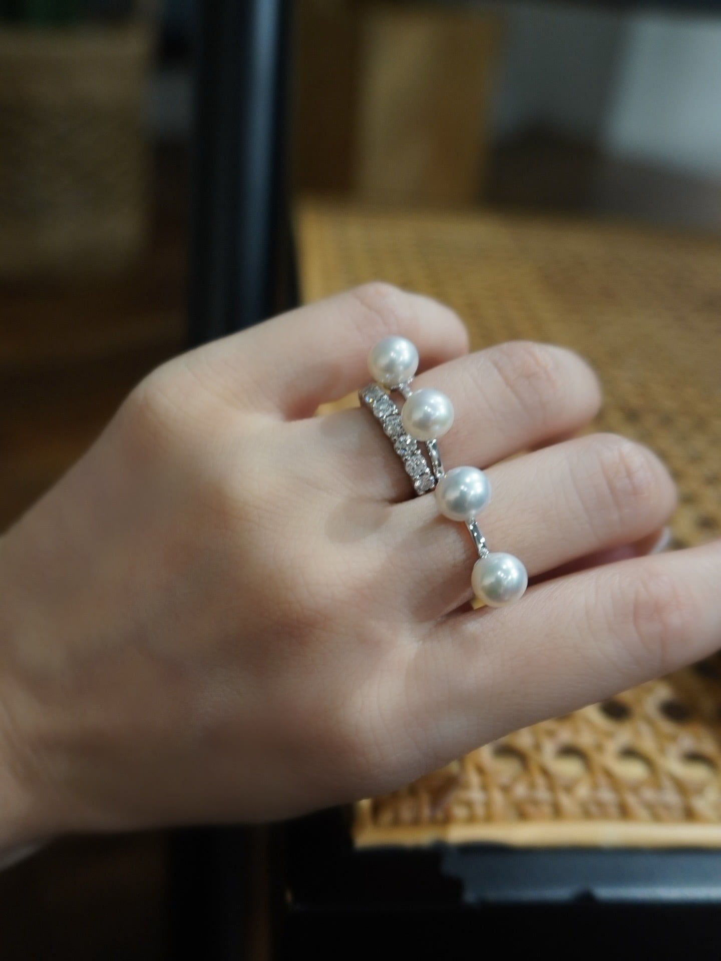 大人気のラブリングがデザイン、素材をリニューアルして登場です。ハート×パールのデザインが上品で女性らしいダブルフィンガーリング。つけるだけで存在感があり、こなれた印象に仕上がります。ハート型のフォルムに4粒の淡⽔パールを配し、愛らしさと存在感を兼ね備えています。ゴールドの輝きとパールの柔らかな光沢が、⼿元を華やかに演出します。記念⽇のギフトにもおすすめです。