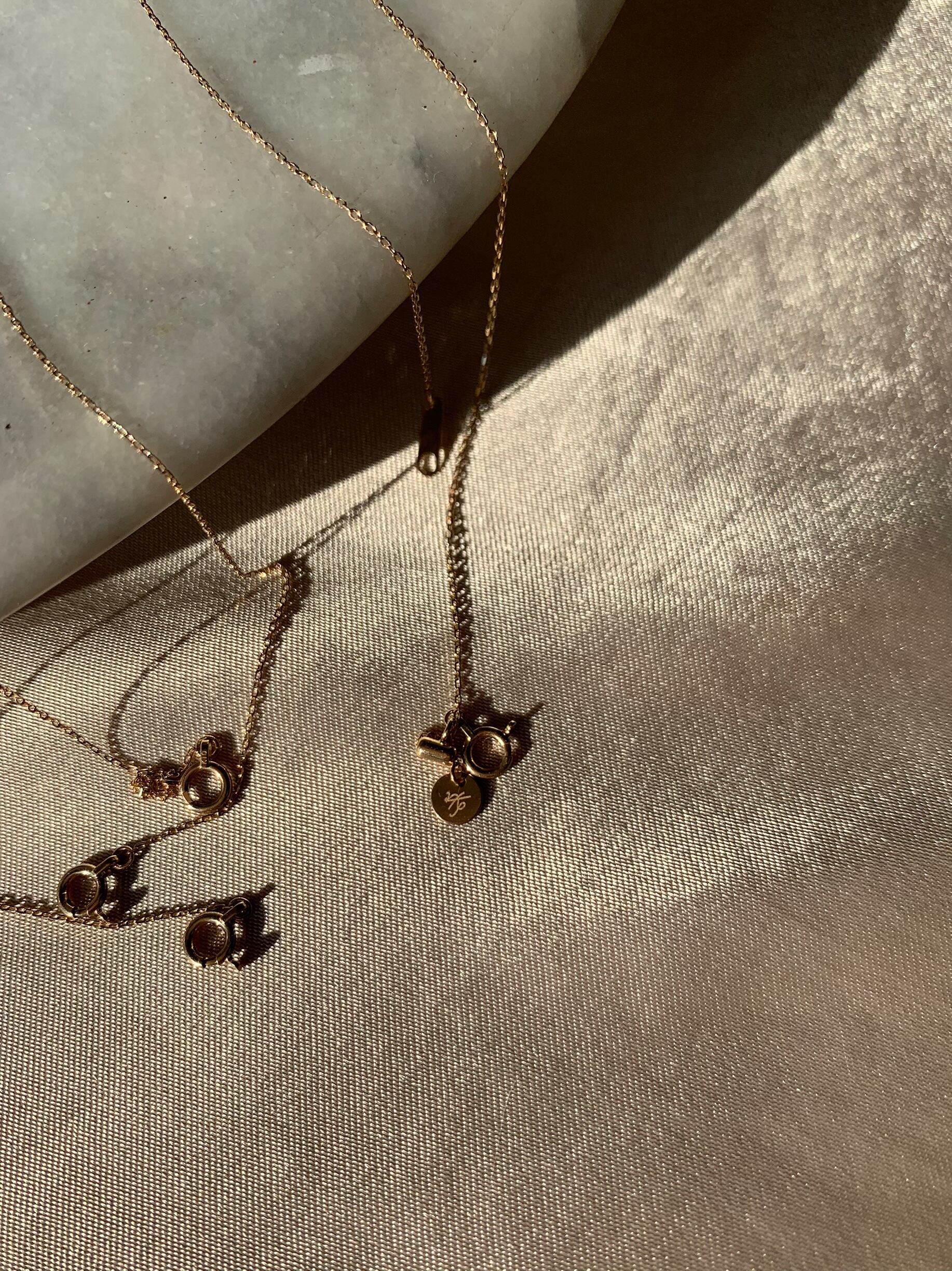 小さく華奢な「C」のイニシャルがトップについたHYEONオリジナルのネックレス。わざと左側にデザインされた小さなイニシャルモチーフの程よい存在感がさりげなく、とても上品に見えるように仕上げました。K10仕様のイエローゴールドの美しいきらめきや華奢なチェーンデザインが、デコルテを美しく見せてくれます。シーンを選ばずオンオフで使って頂けます。商品はHYEONオリジナルのジュエリーボックスに入れてお届け致します。