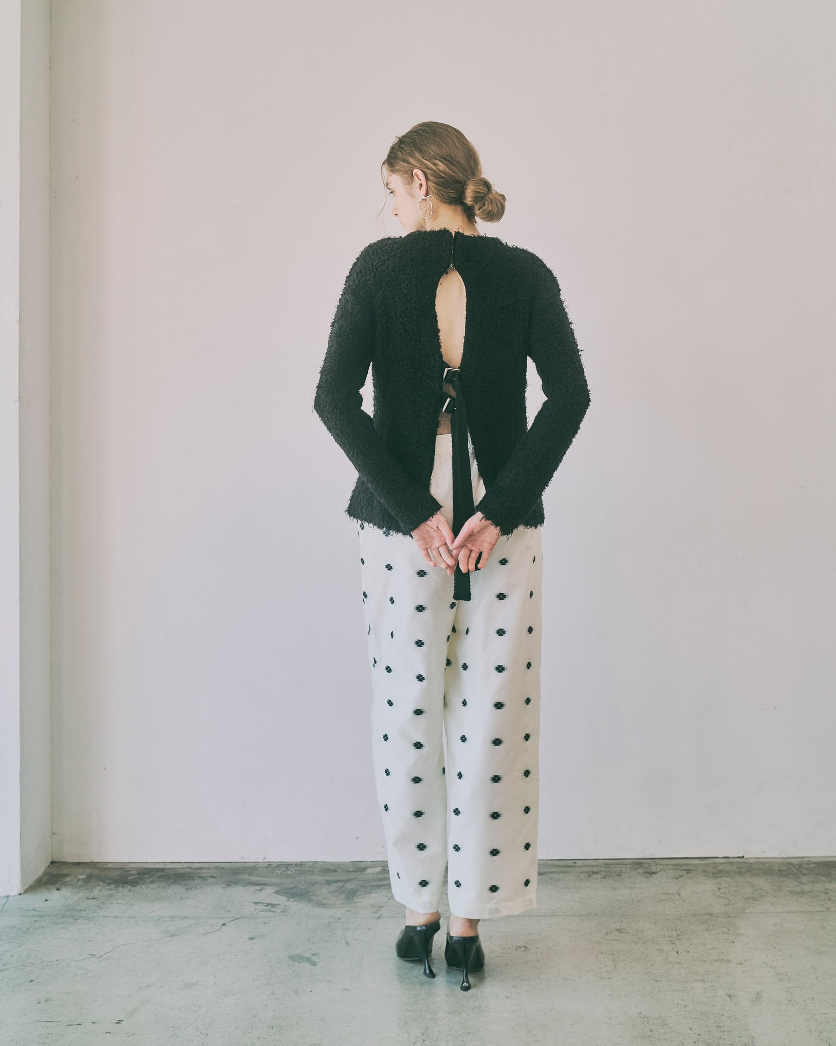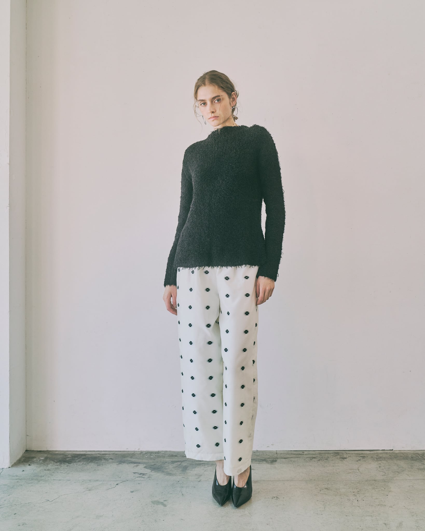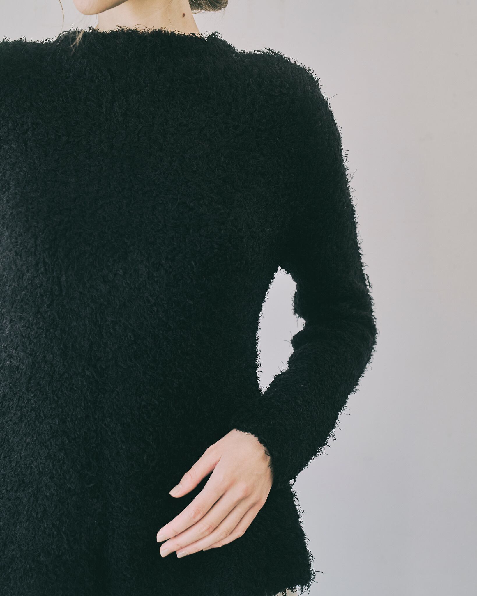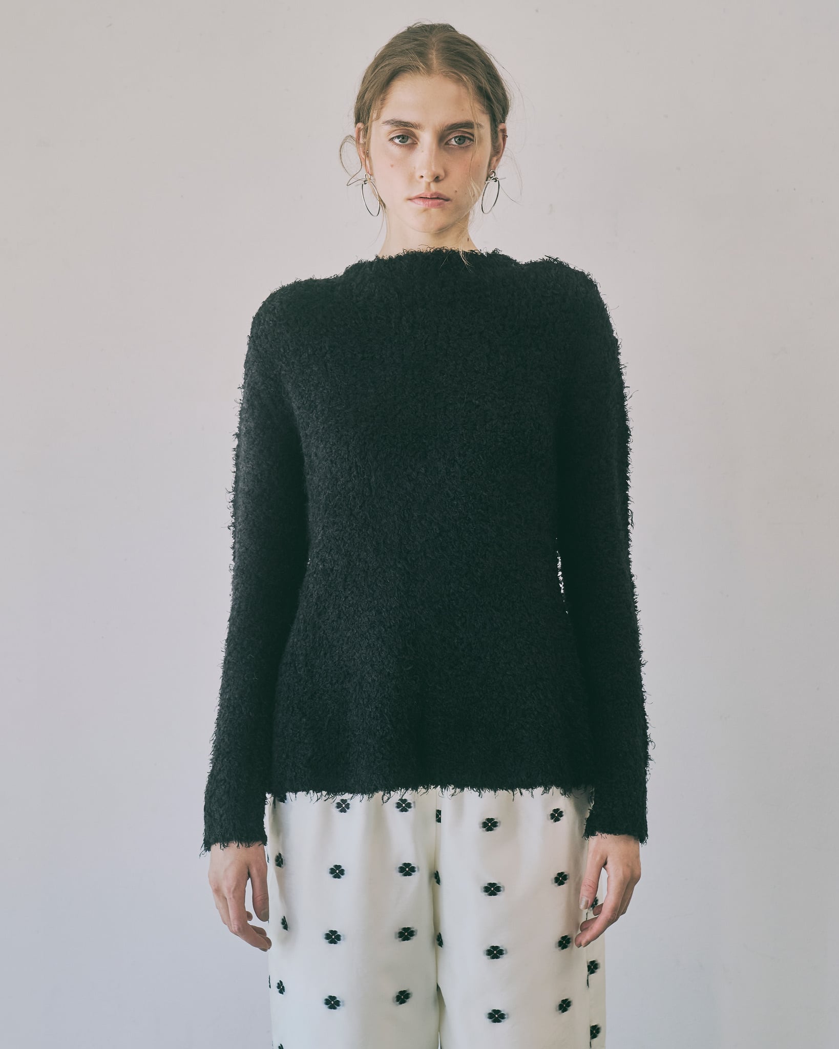 素材には、複数の⽷をミックスした特別なブレンド⽷を使⽤。異なる太さや質感の⽷を組み合わせることで、奥⾏きのある表⾯感と豊かな陰影を⽣み出しました。チクチク感のない柔らかな肌触りも魅⼒です。