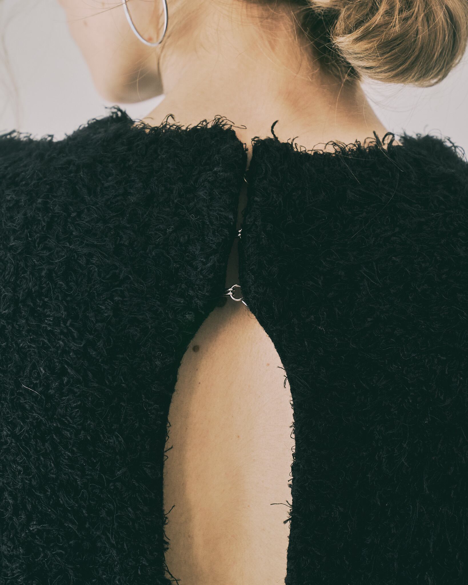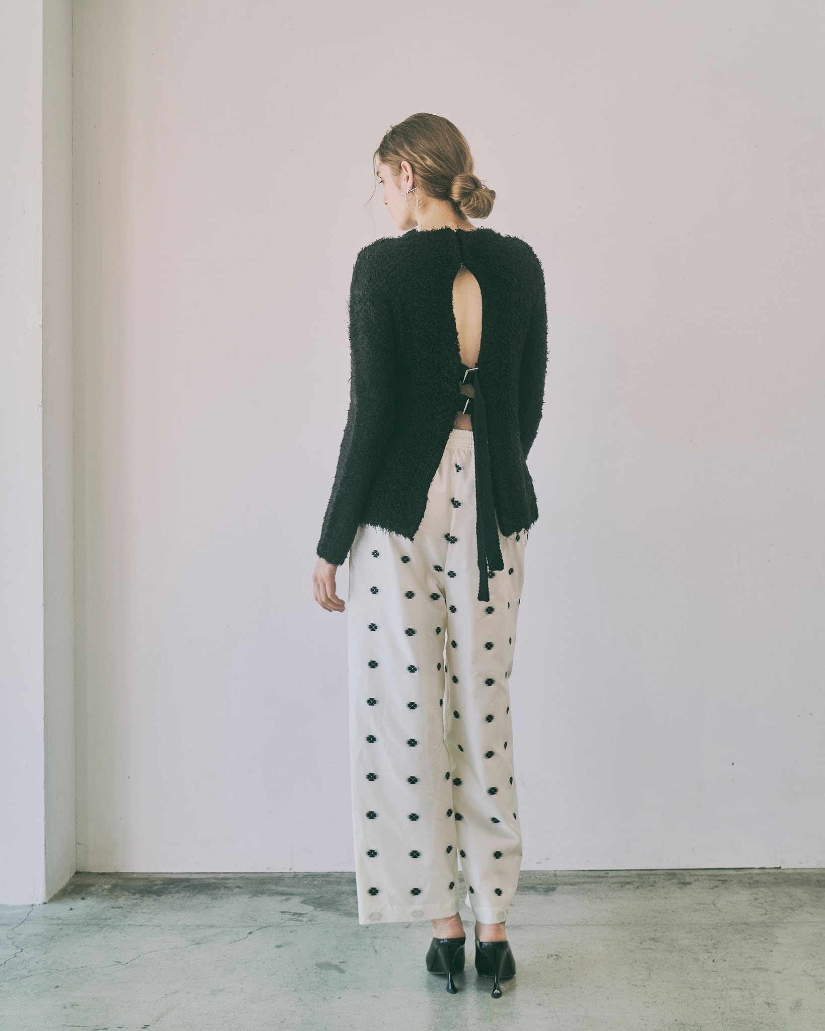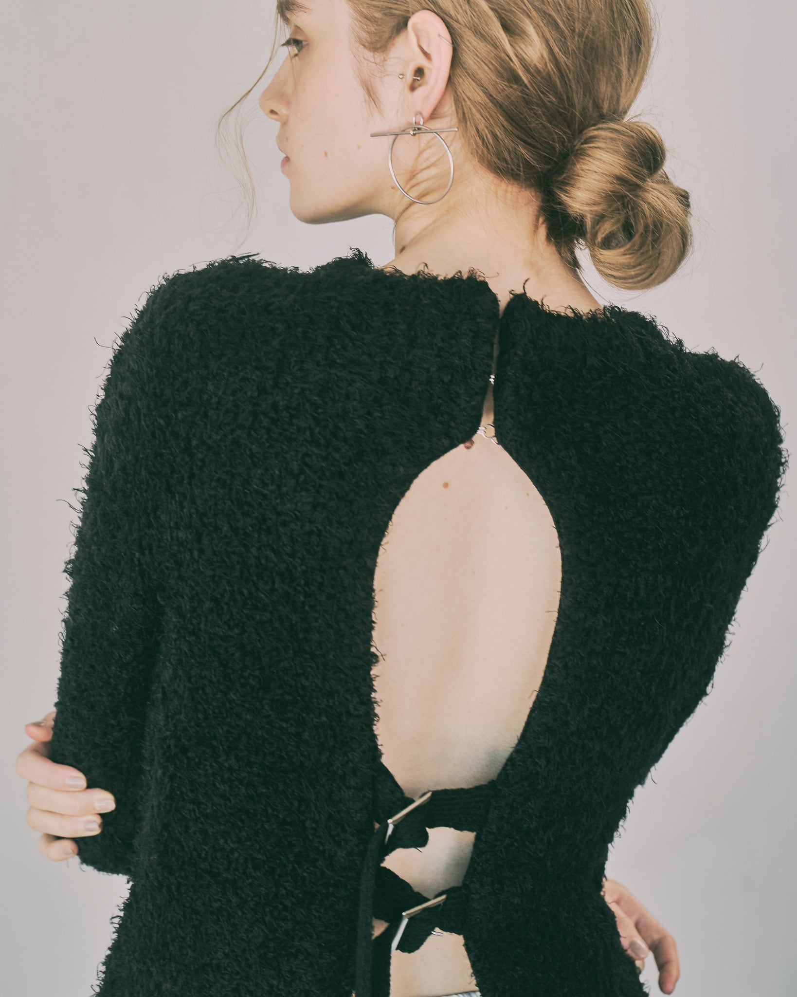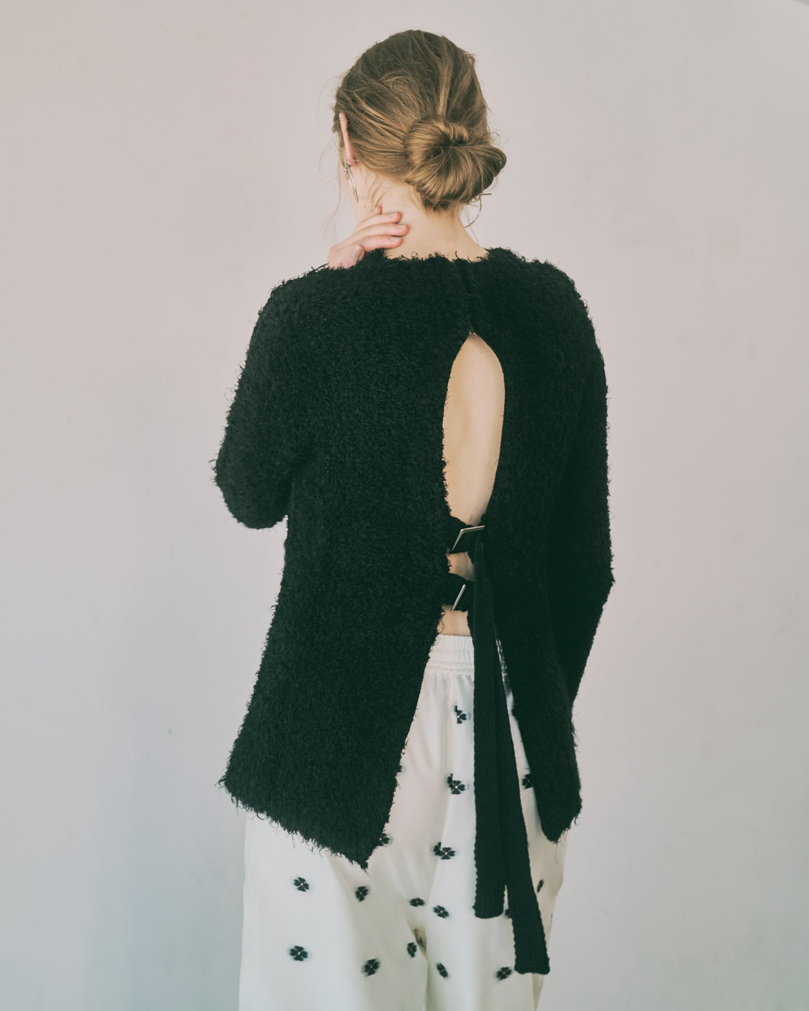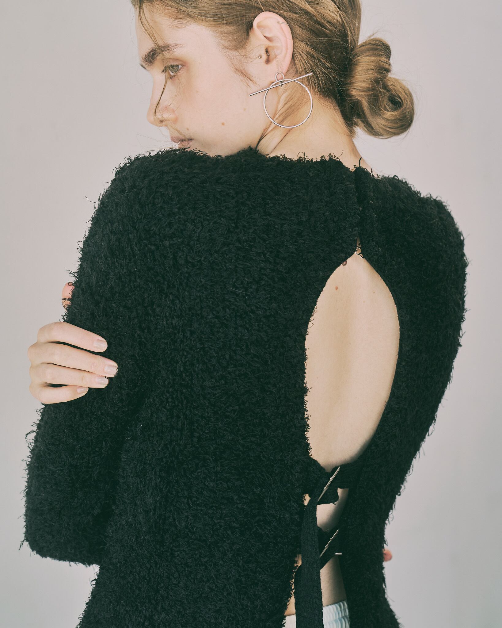 ⾝頃に配したベルトが印象的なニットカーディガン。使用する付属や絶妙なバランスに拘ることでシンプルな中にも構築的な印象を与える一着に。前後どちらを前にしても着用できる2way仕様で、羽織りとしてもトップスとしてもスタイリングや気分に合わせてアレンジが可能。襟部分は3か所ホックで留めていただけます。
