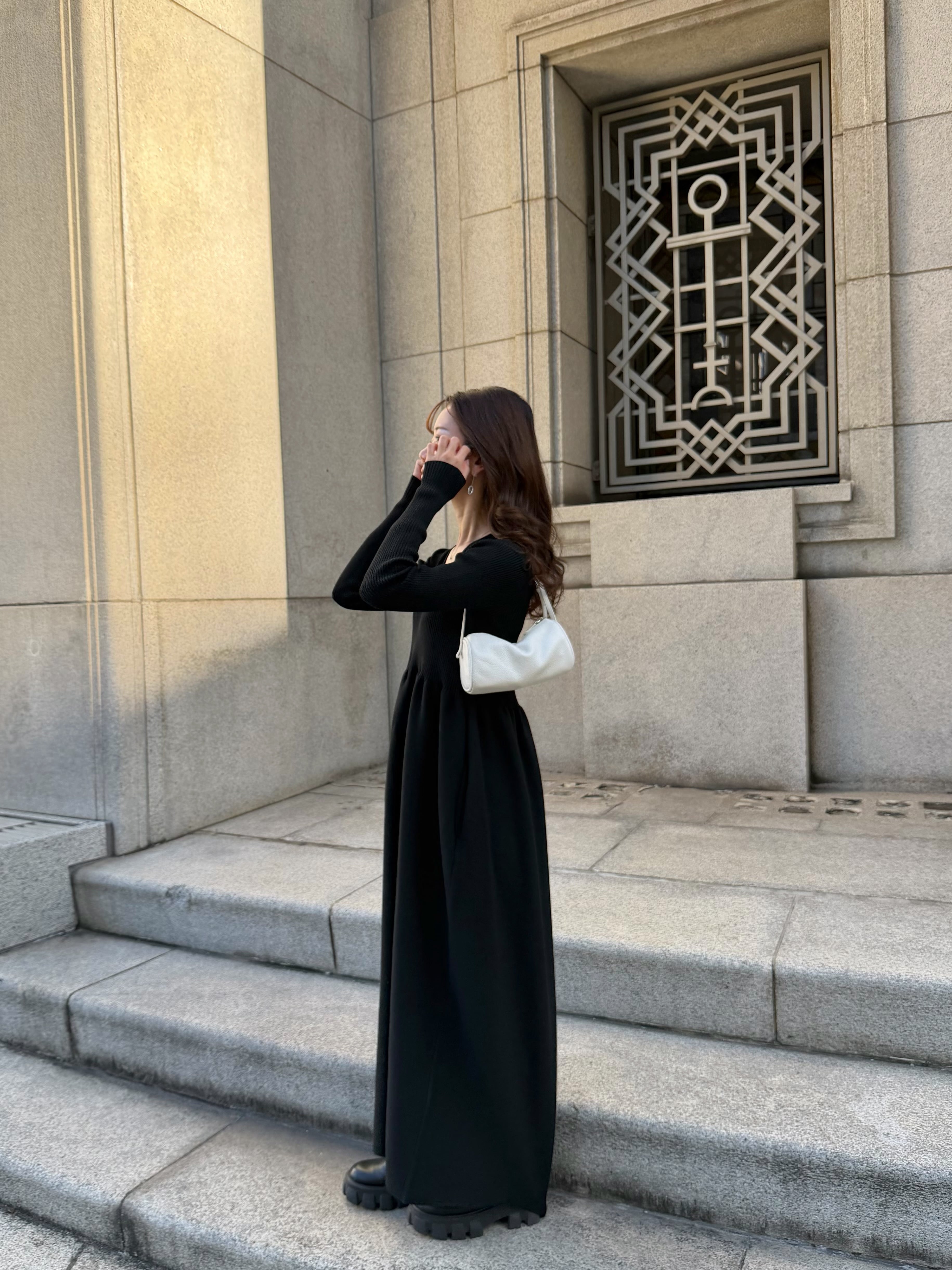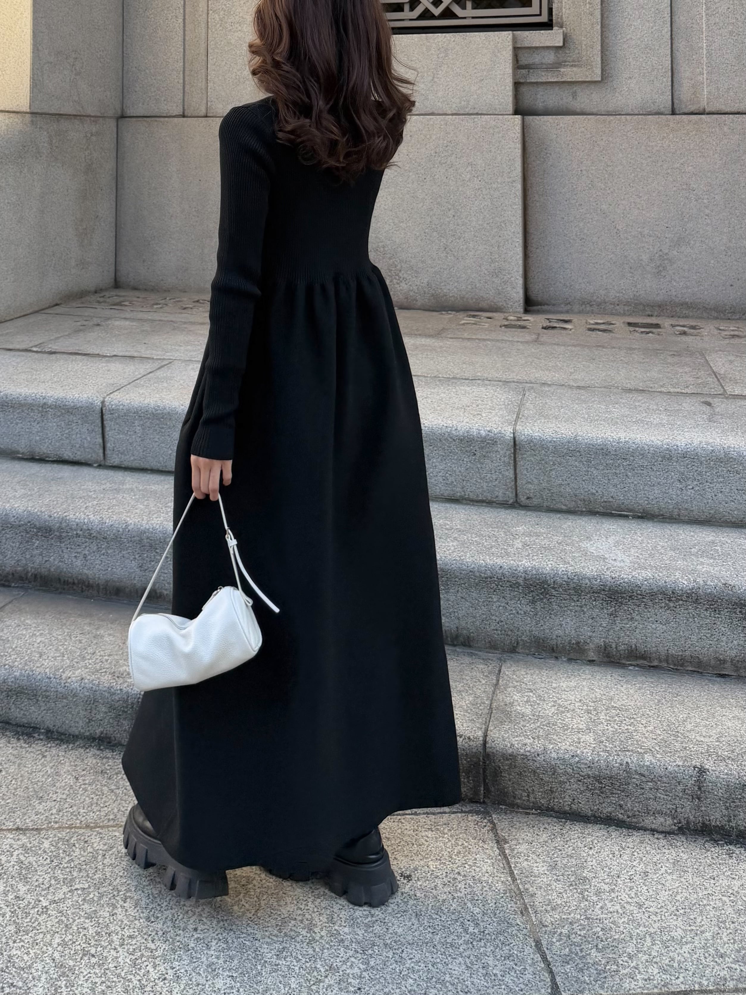 クルーネックと、程よく開いたネックラインを前後2WAYで楽しめるニットワンピース。気分やシーンに合わせて異なる表情を楽しめる、女性らしい1枚に仕上げました。