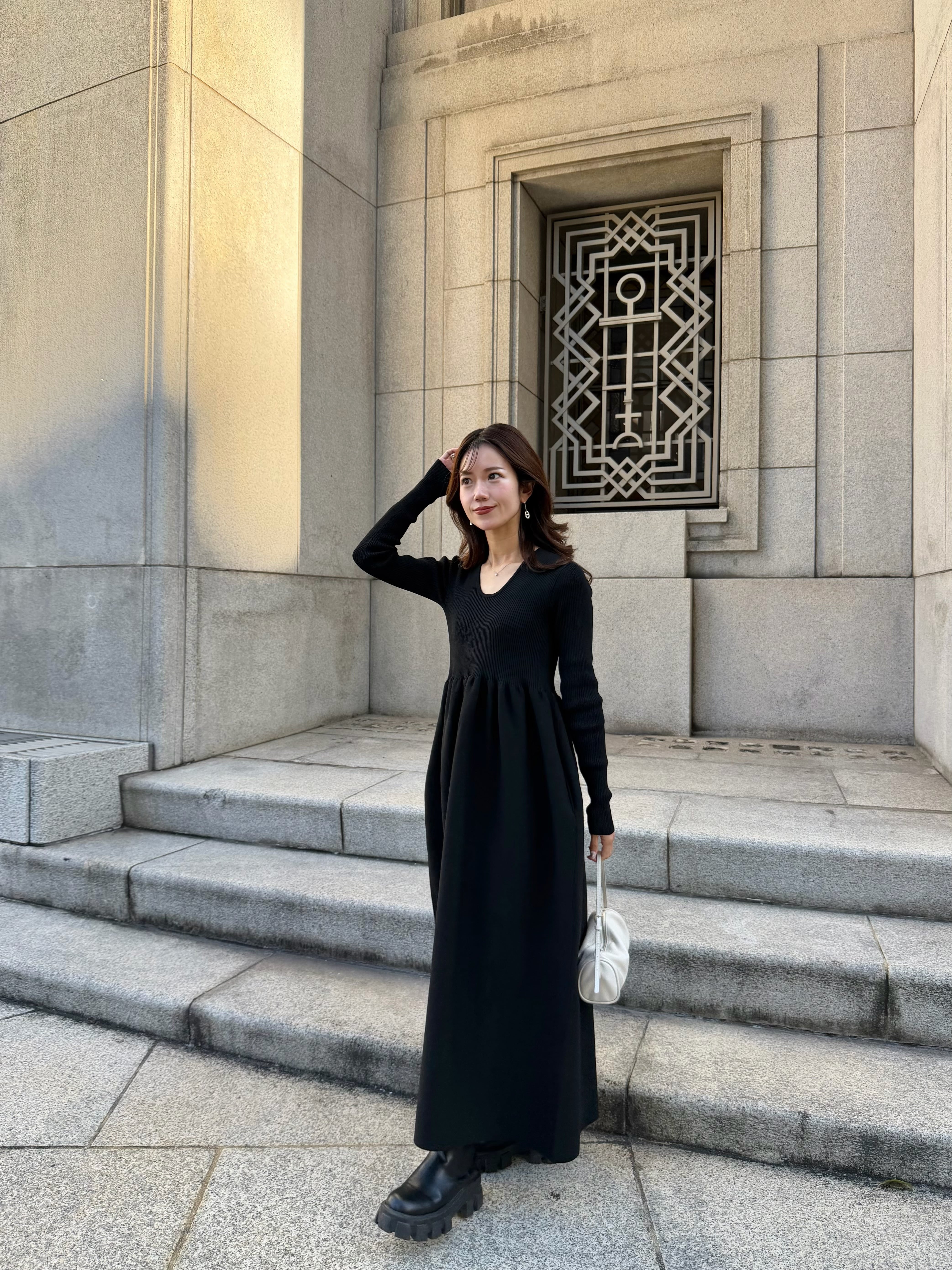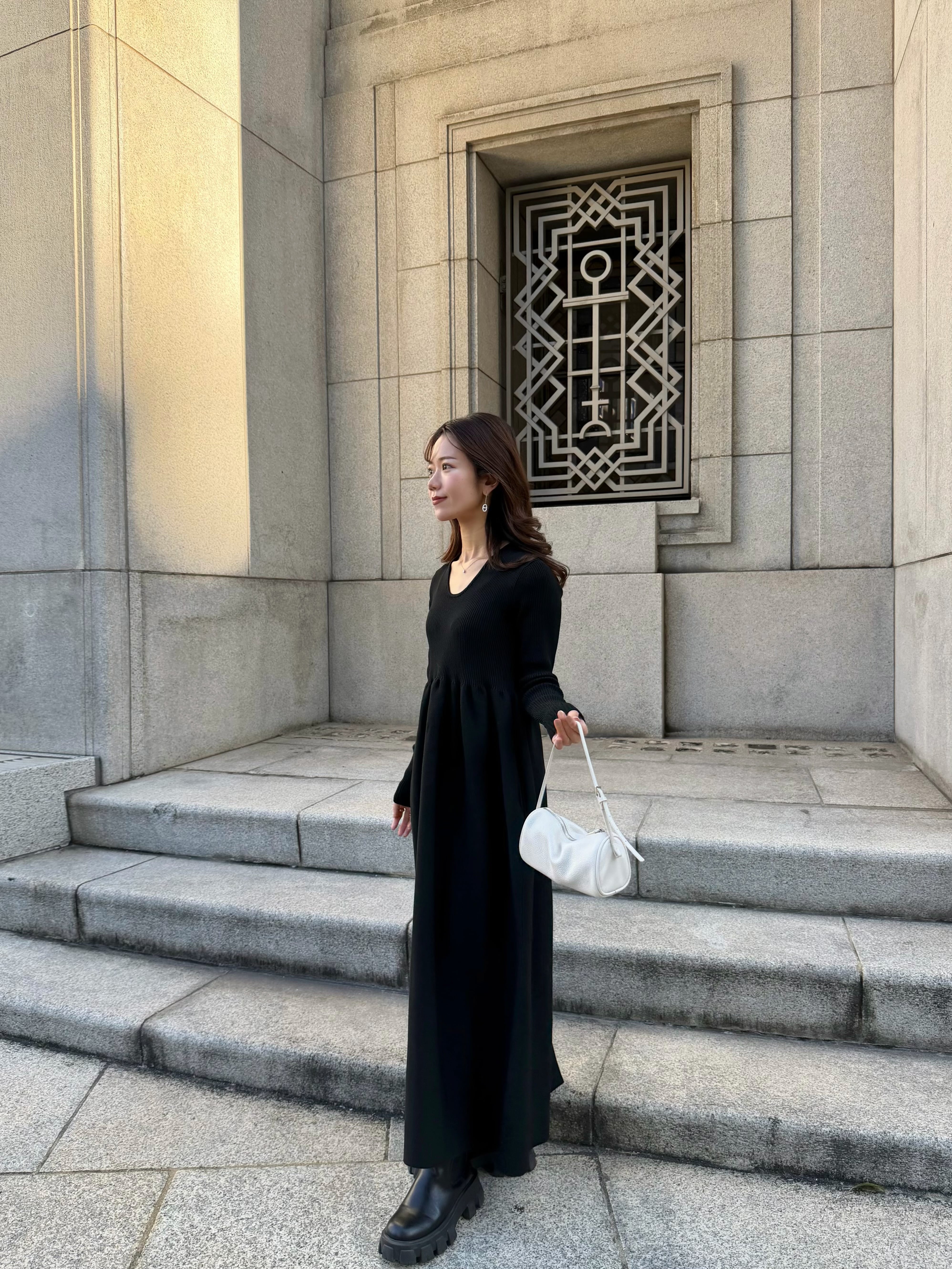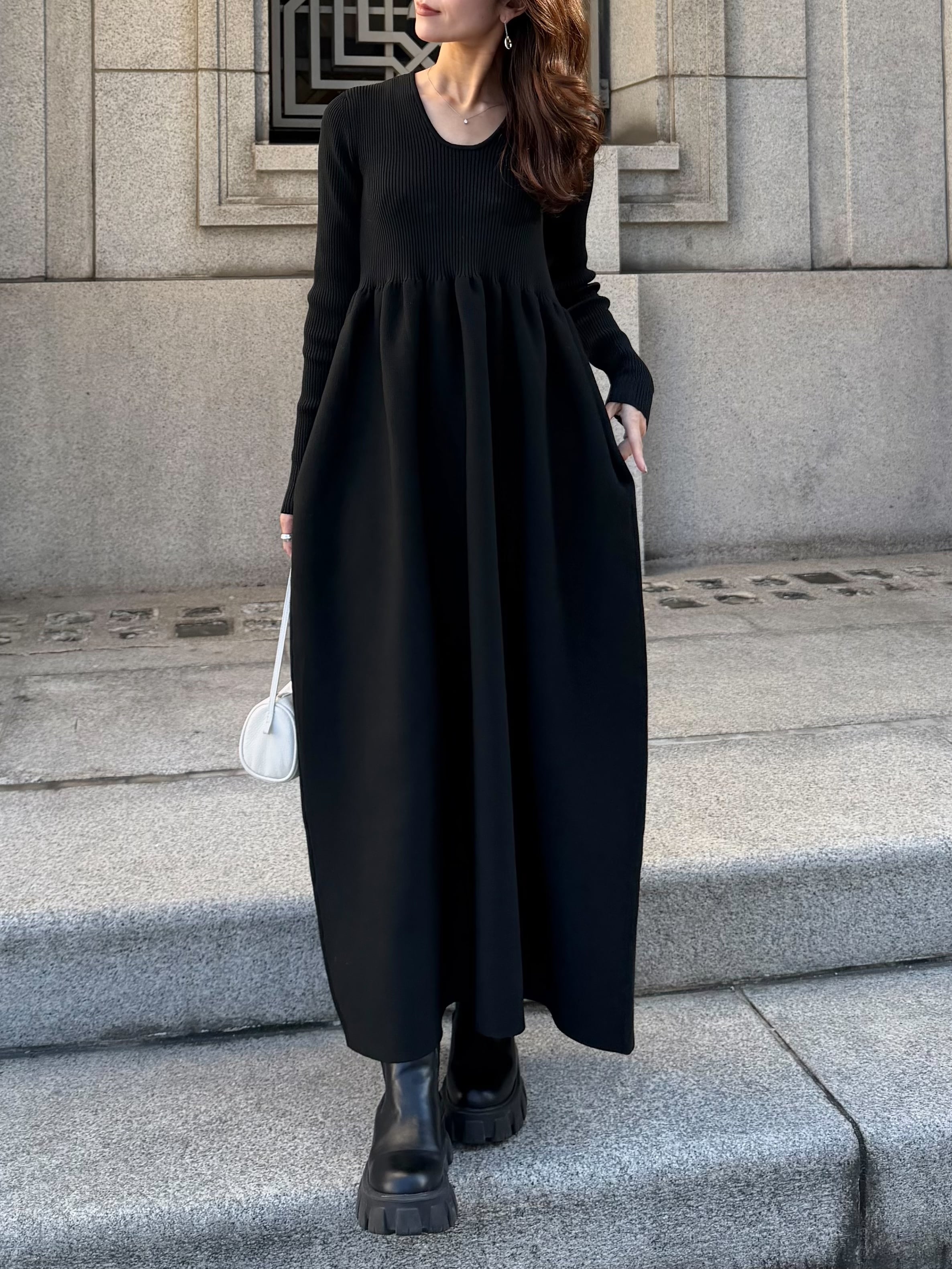 クルーネックと、程よく開いたネックラインを前後2WAYで楽しめるニットワンピース。気分やシーンに合わせて異なる表情を楽しめる、女性らしい1枚に仕上げました。