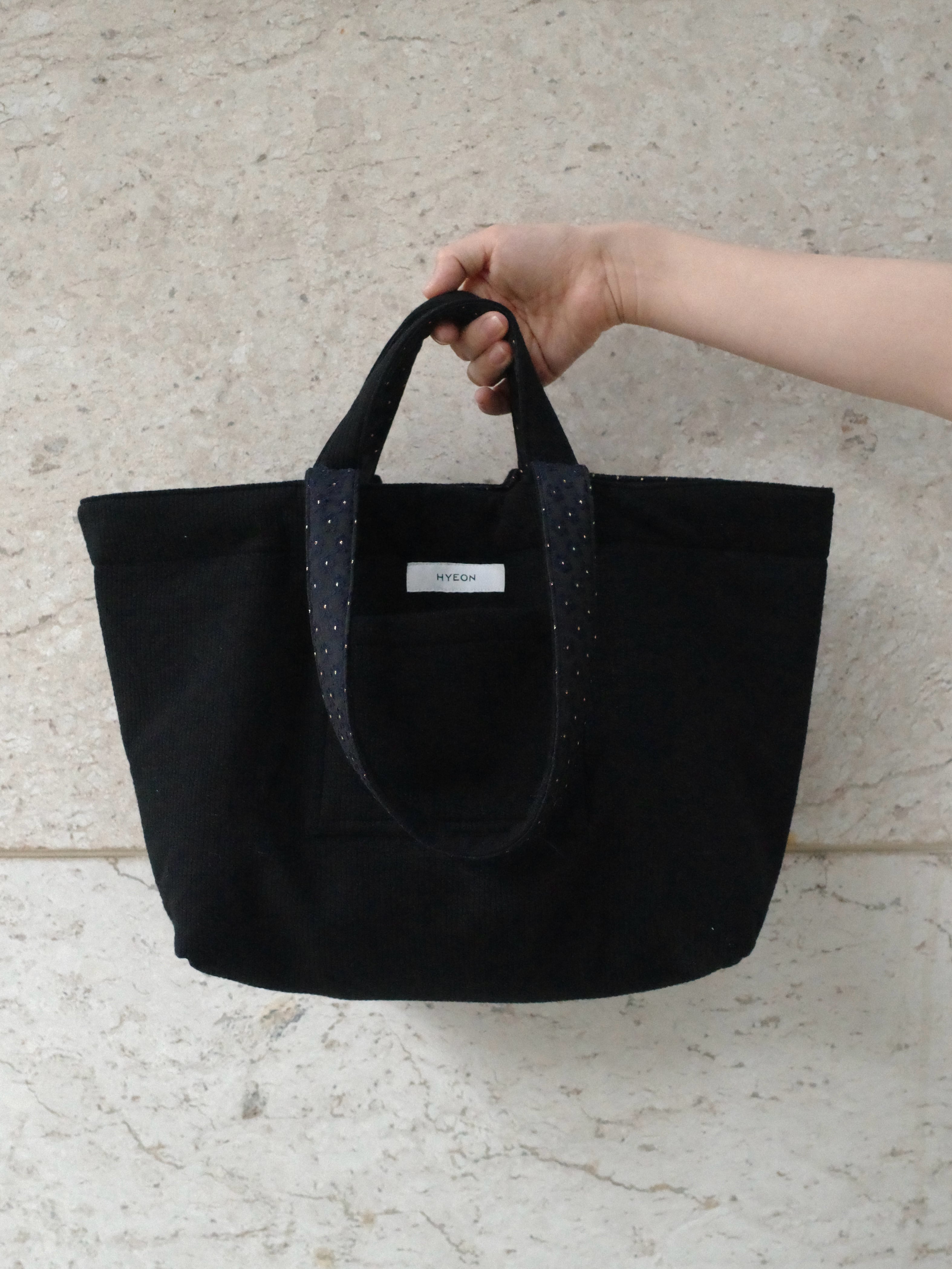 マチ付きで見た目以上の収納力があり、長短2種類のハンドルで肩掛けも可能。