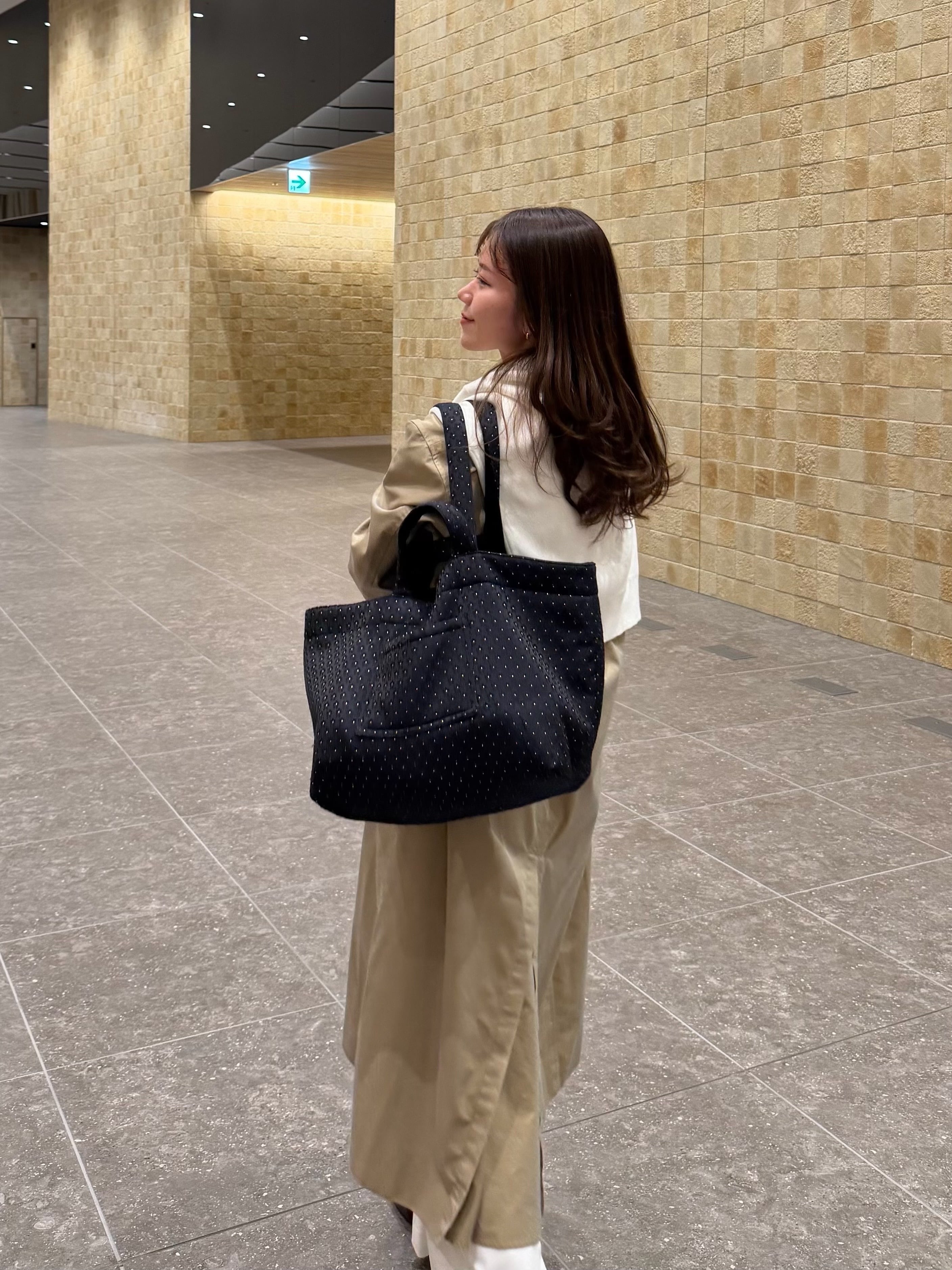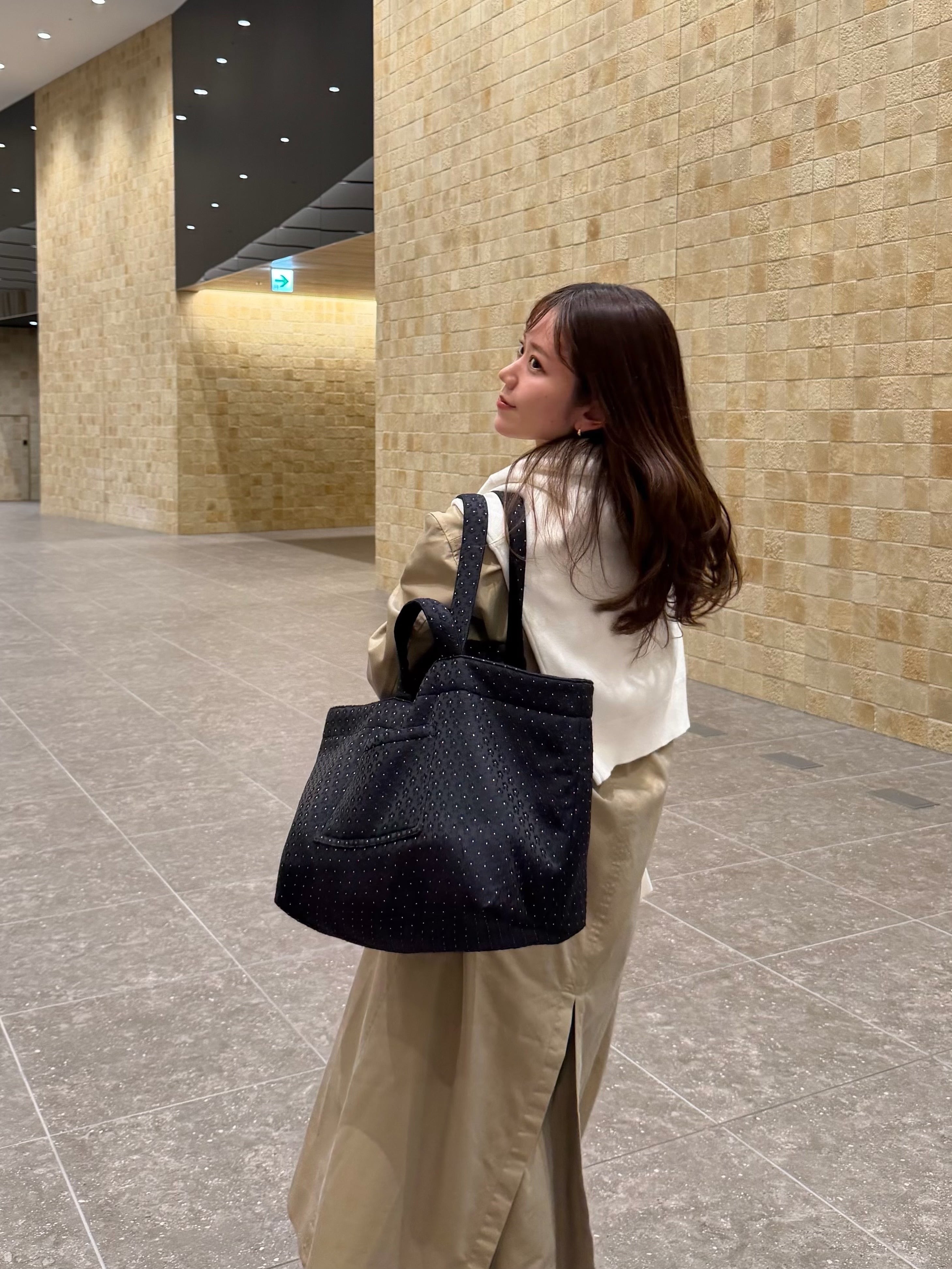 内側には柔らかな肌触りのイブル素材を使用。さりげない凹凸感がバッグの内側まで優しい表情を生み出します。中綿を入れることで、ふっくらとした立体感のあるシルエットに。