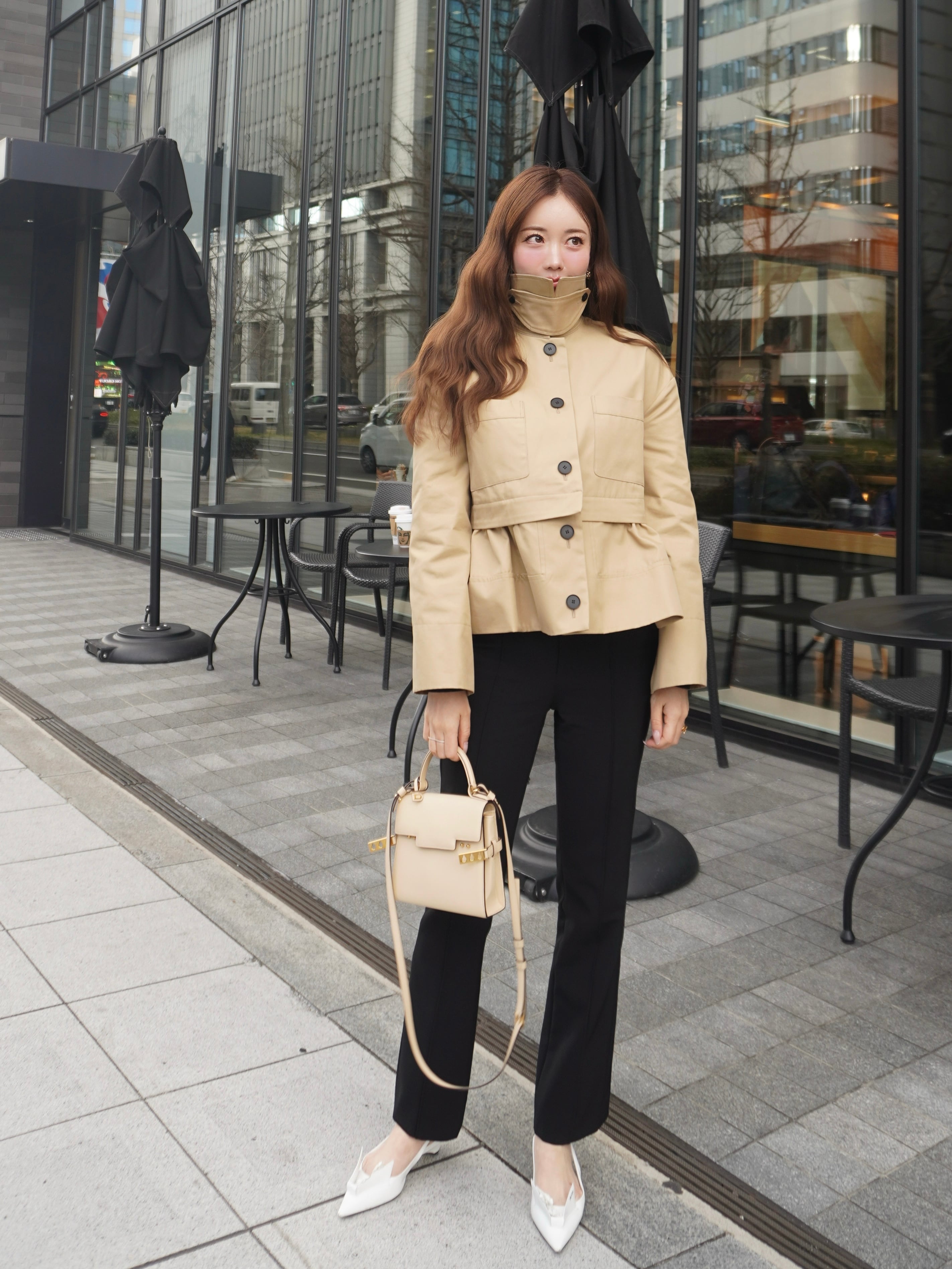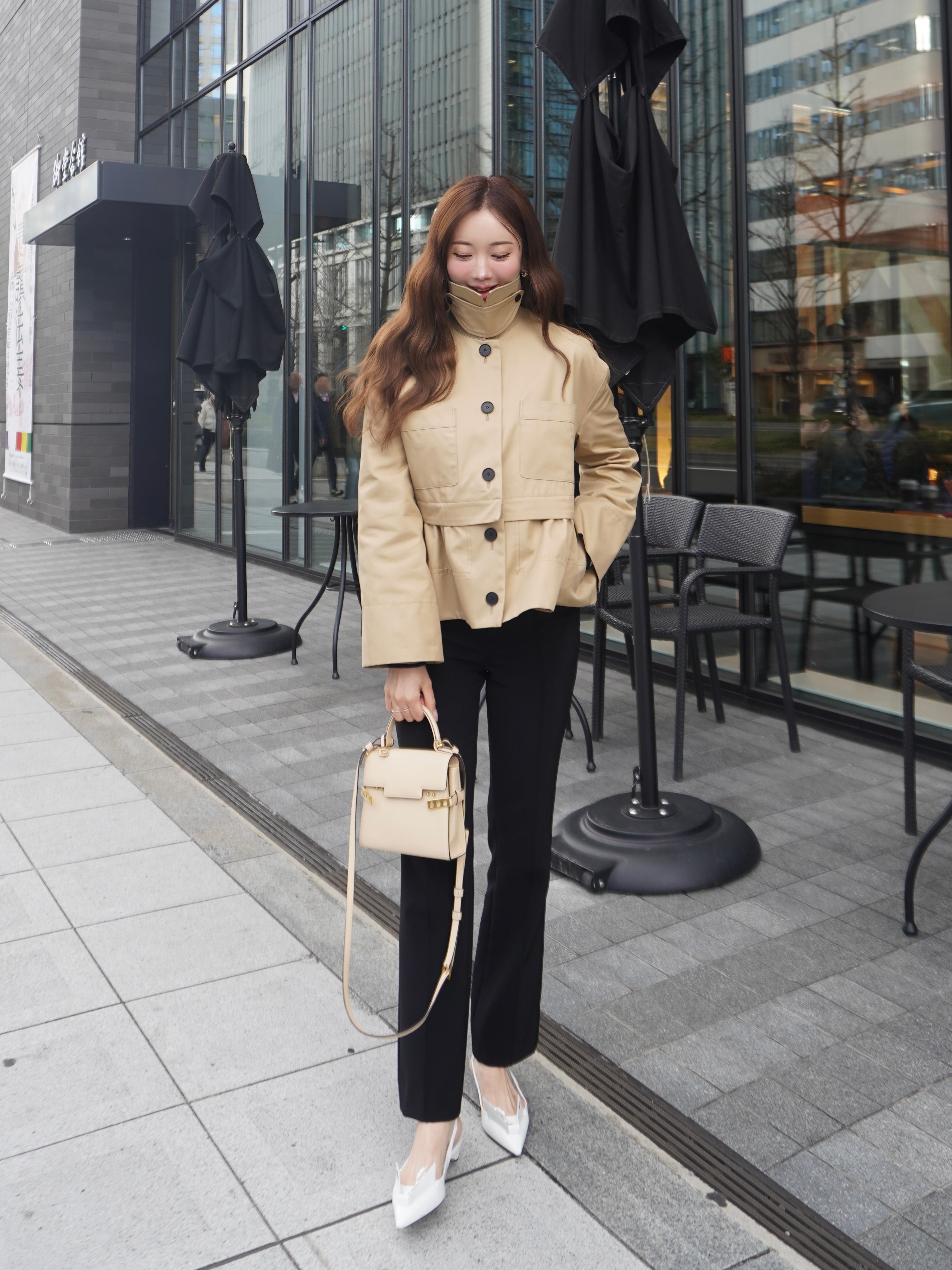 素材は、膨らみのある糸を使用したダブルクロス素材。ハリコシと反発感に拘って選んでいるので体のラインを拾いにくく、美しいシルエットをキープしてくれます。サラりとした肌触りと2wayストレッチでストレスフリーな着心地です。シワになりにくいこともポイントです。ご自宅でのお洗濯も可能です。(手洗い推奨)