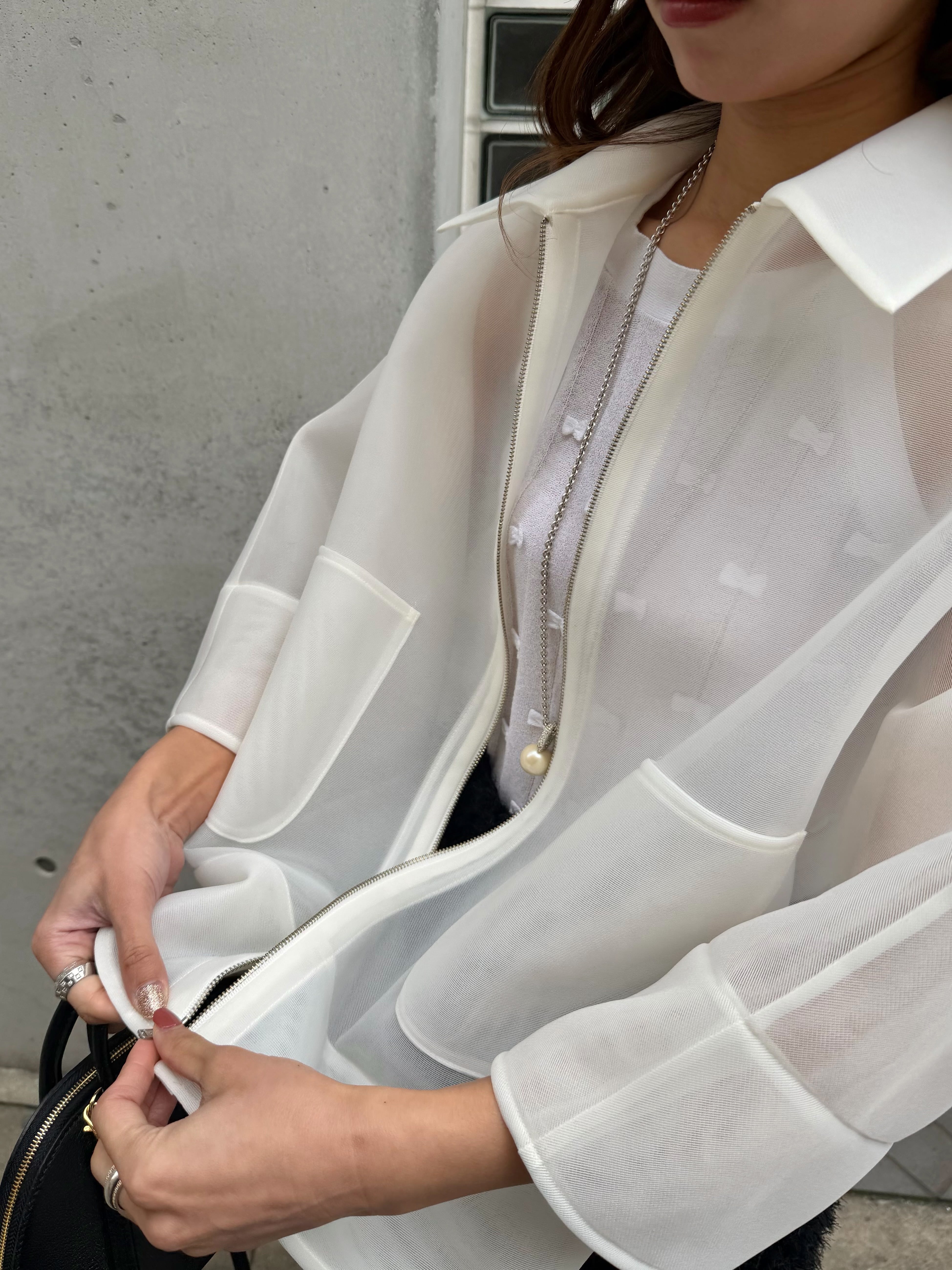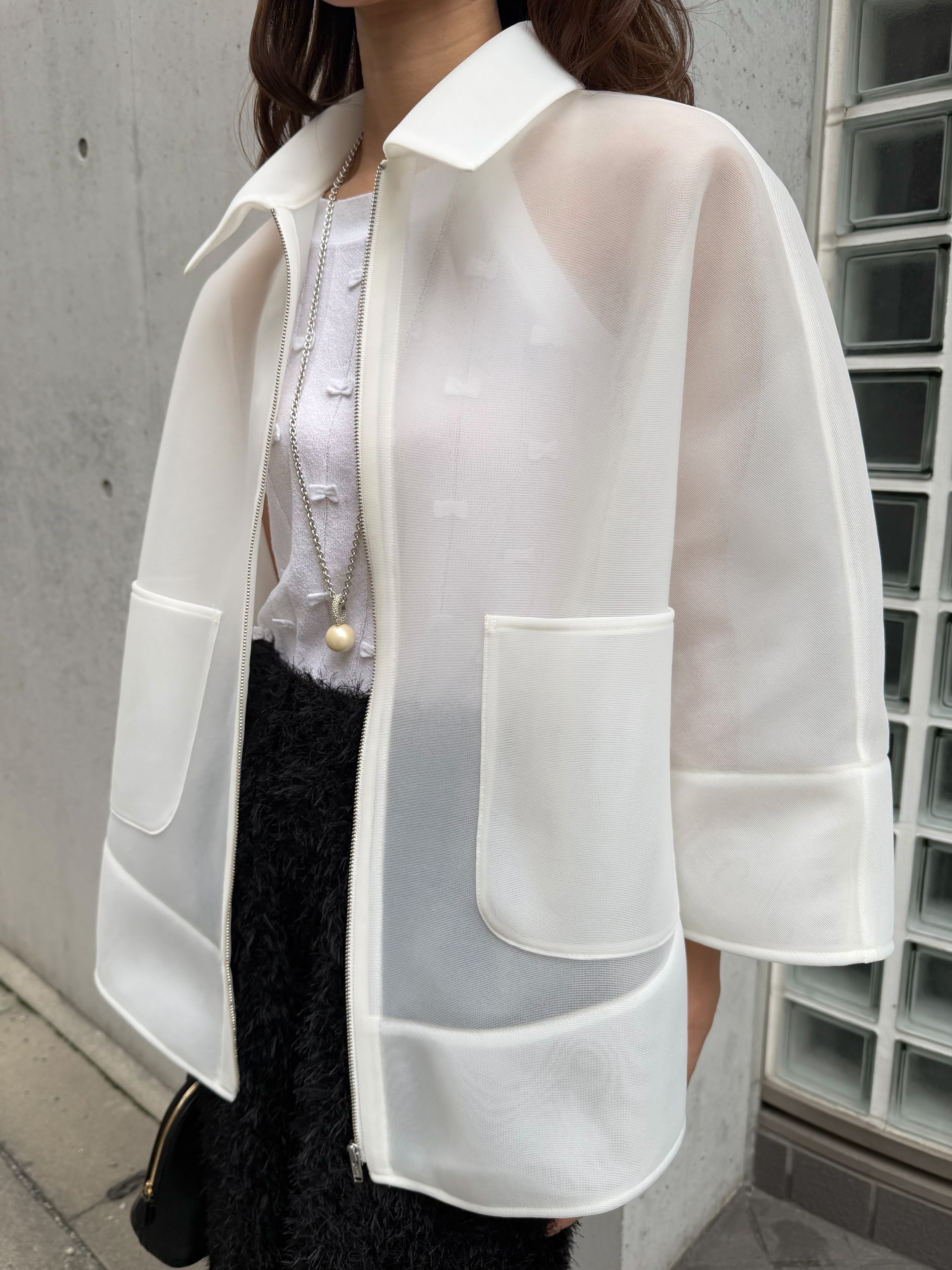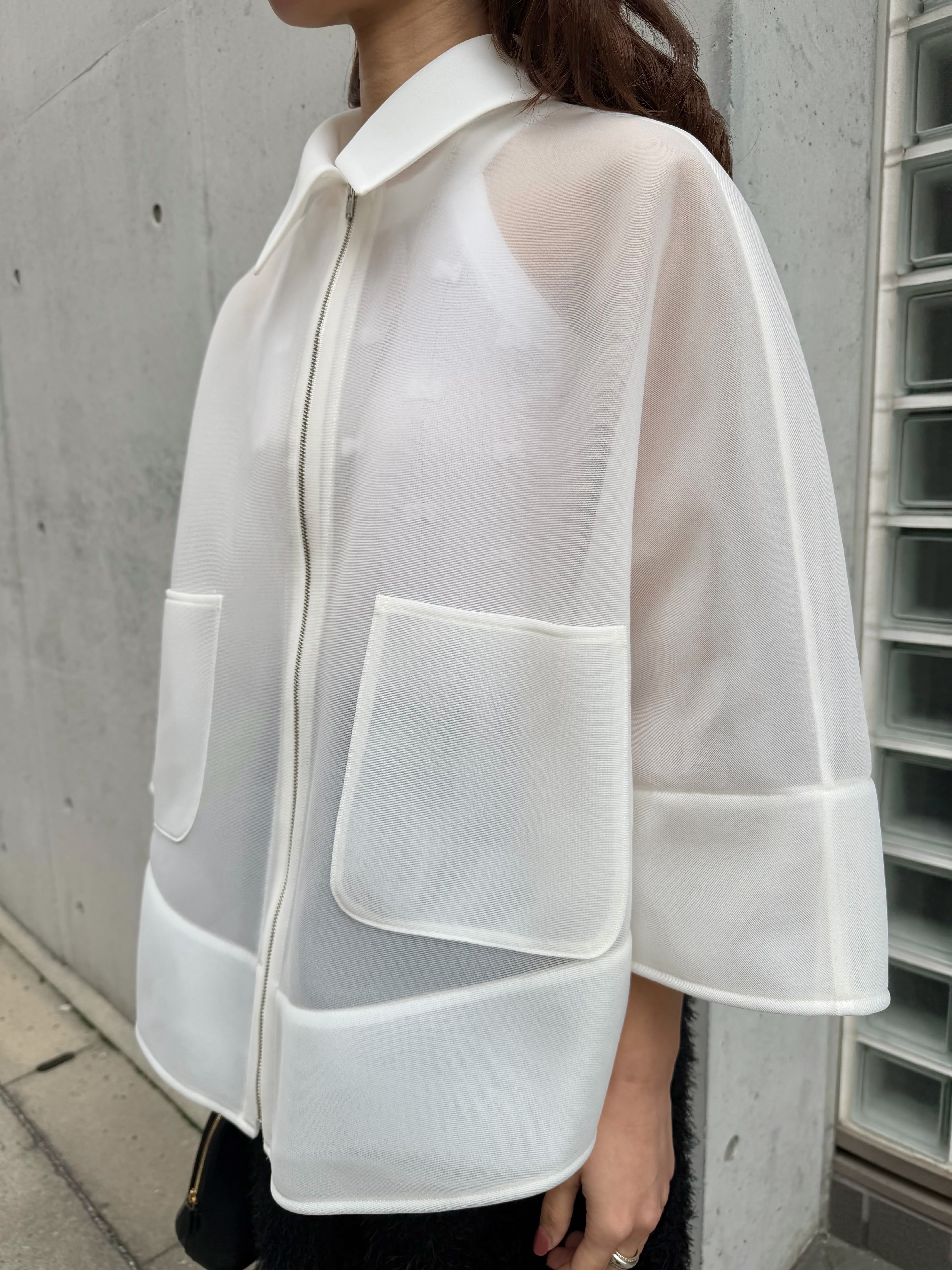 フロントはオープンファスナー仕様で、さらりと羽織れる軽やかな着心地。両サイドにはパッチポケットを配置し、さりげない実用性も兼ね備えました。後ろにはタブディテールを施し、シルエットに奥行きをプラスしています。