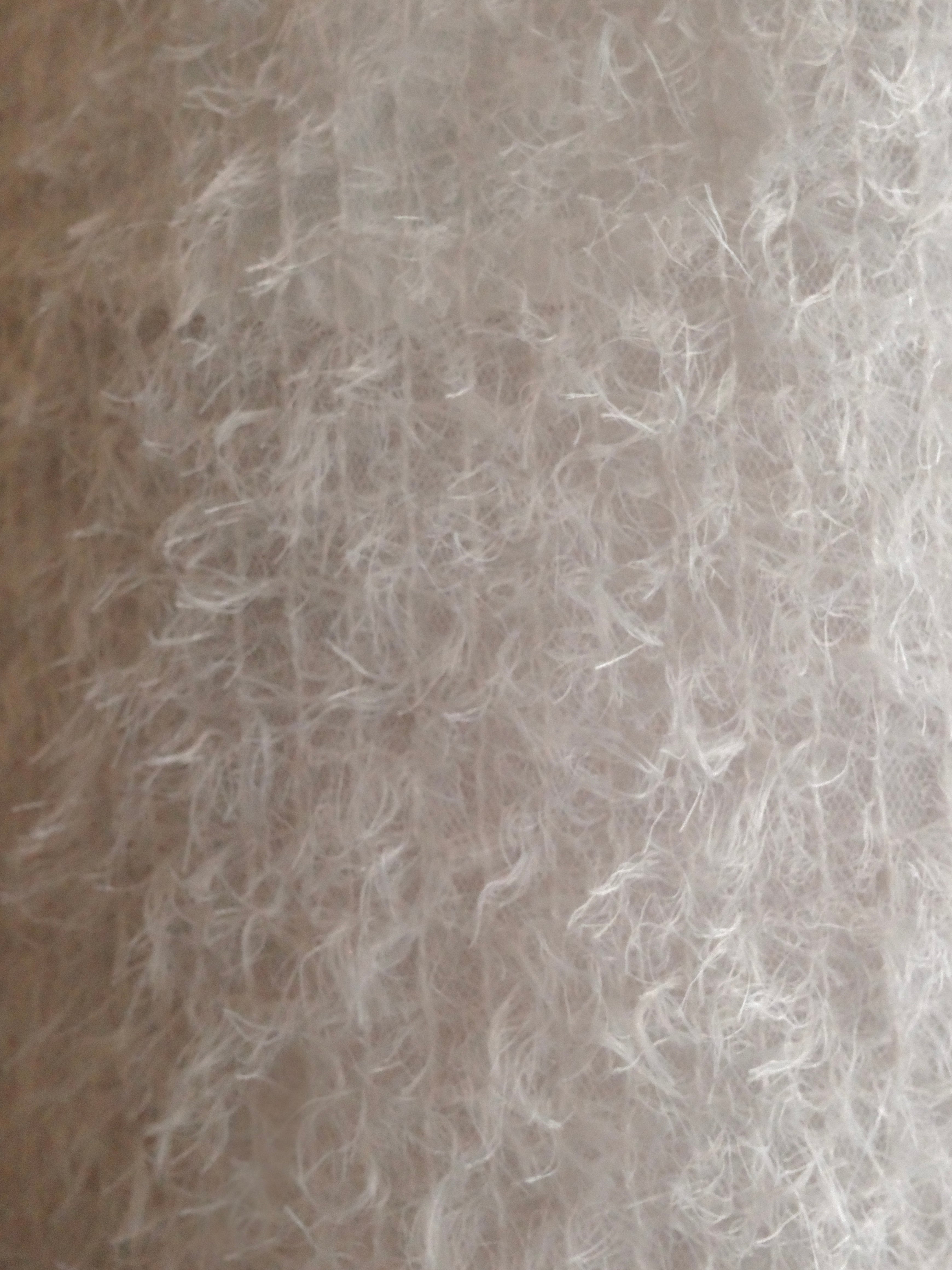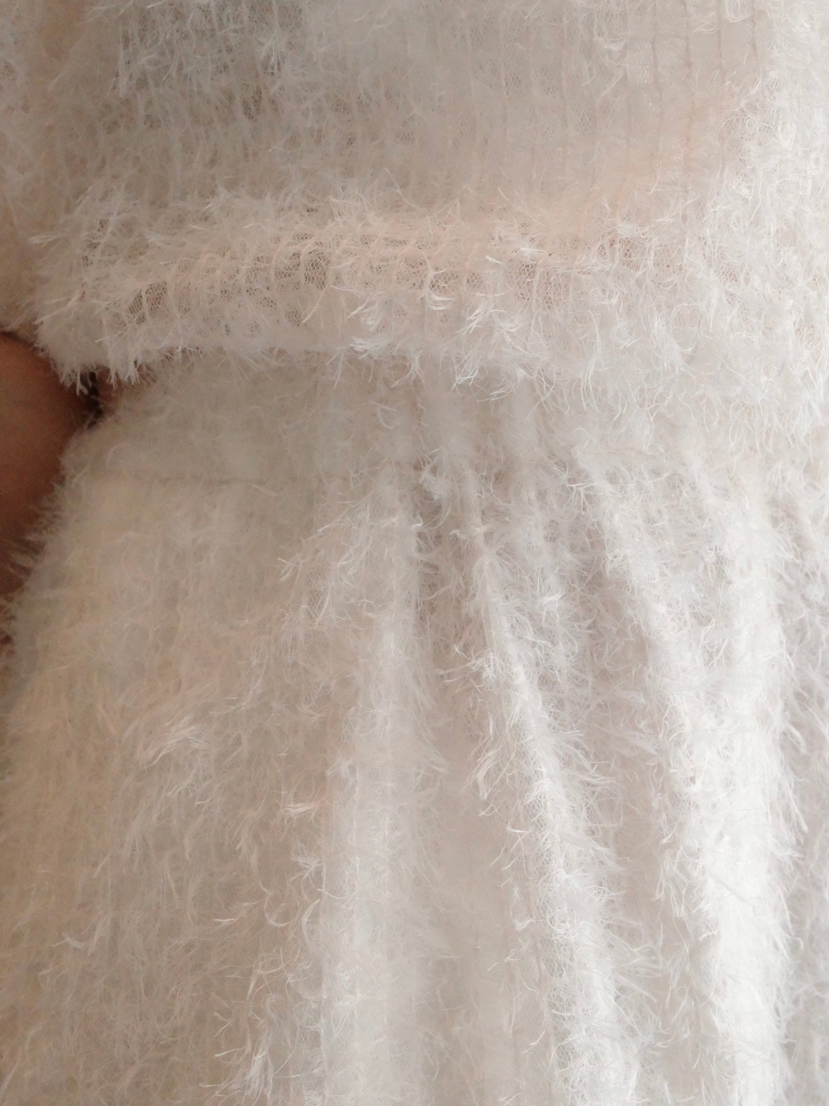 素材は、繊細なチュールをベースに、シャギー糸を刺繍で施した立体感のある素材を使用。