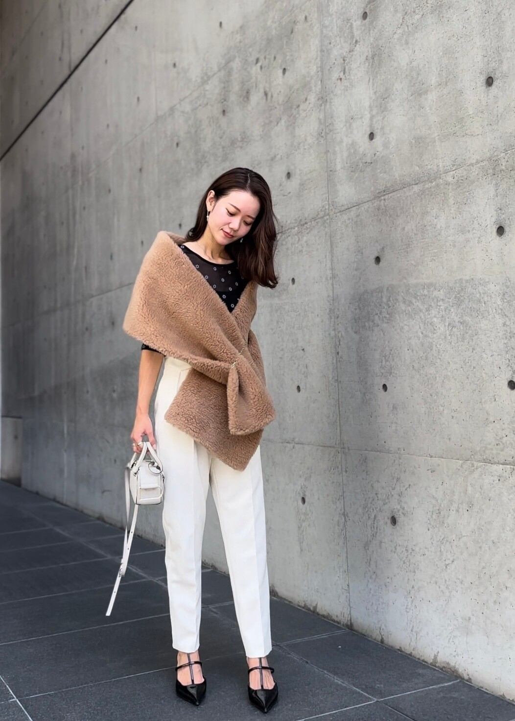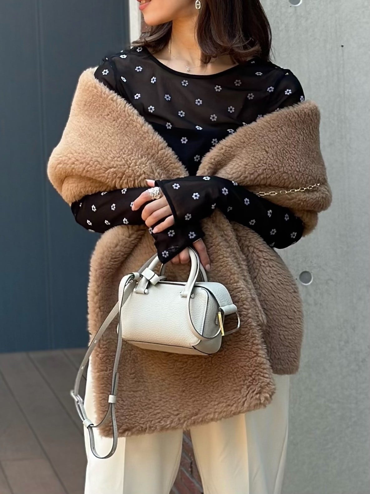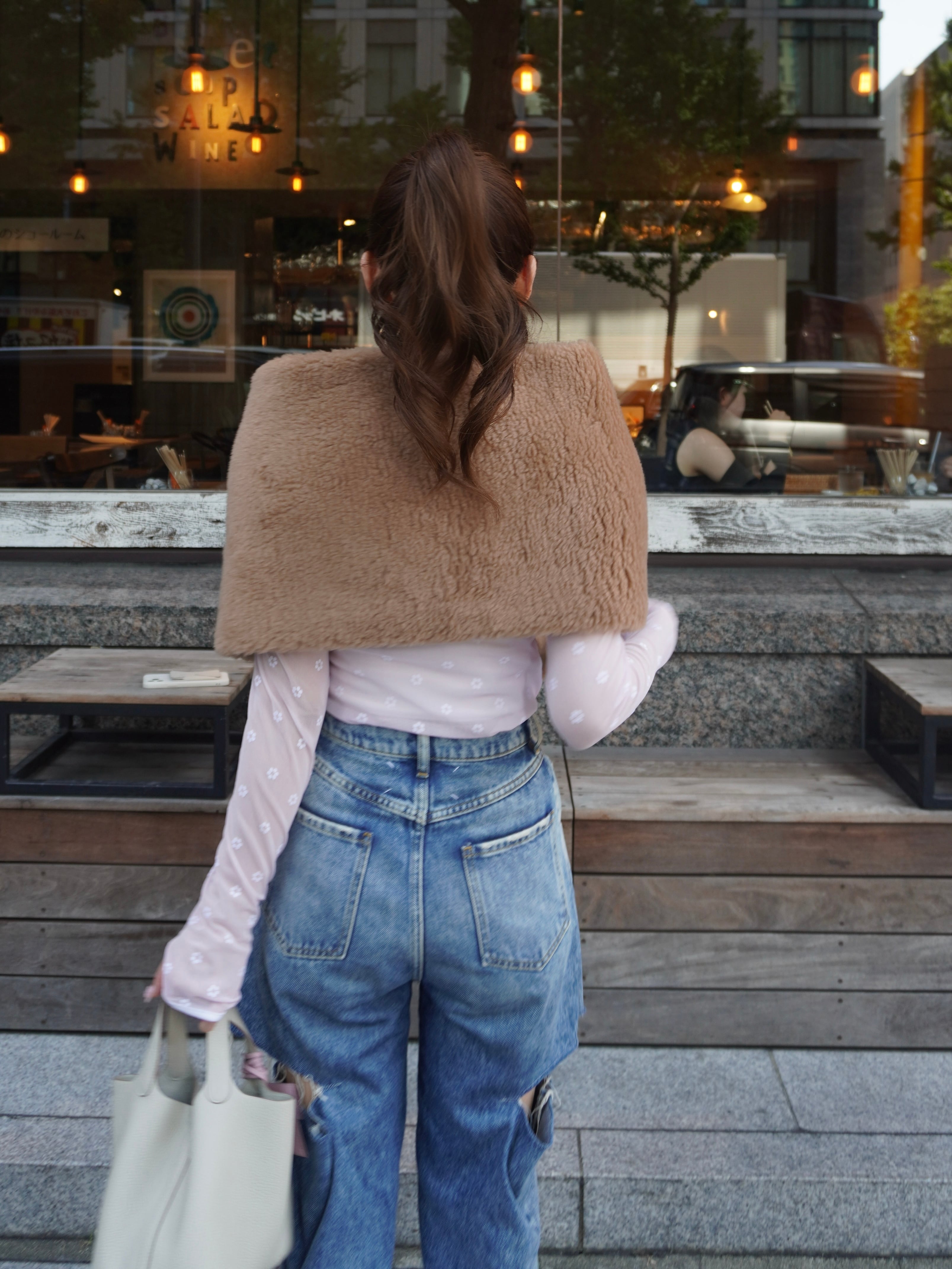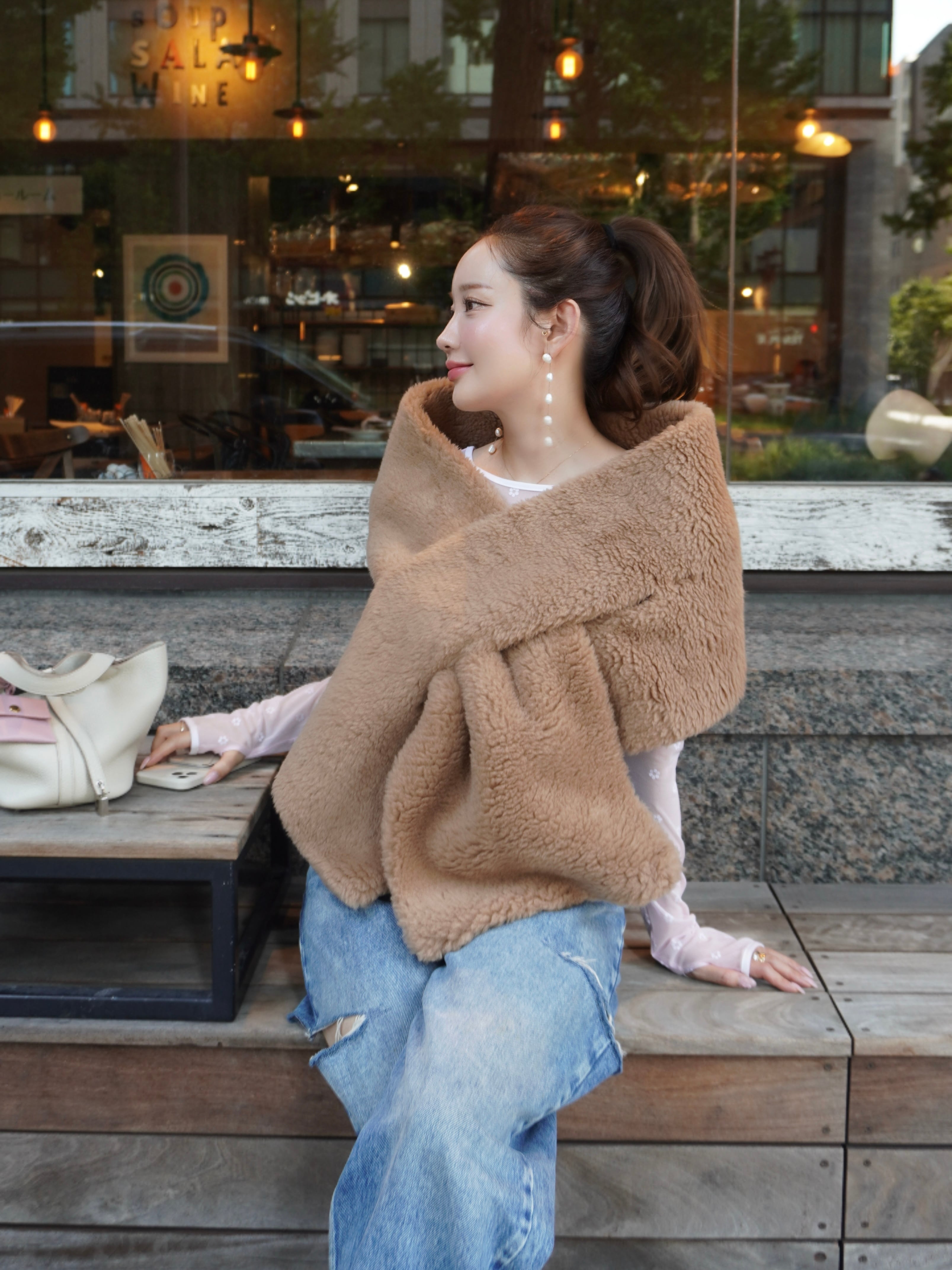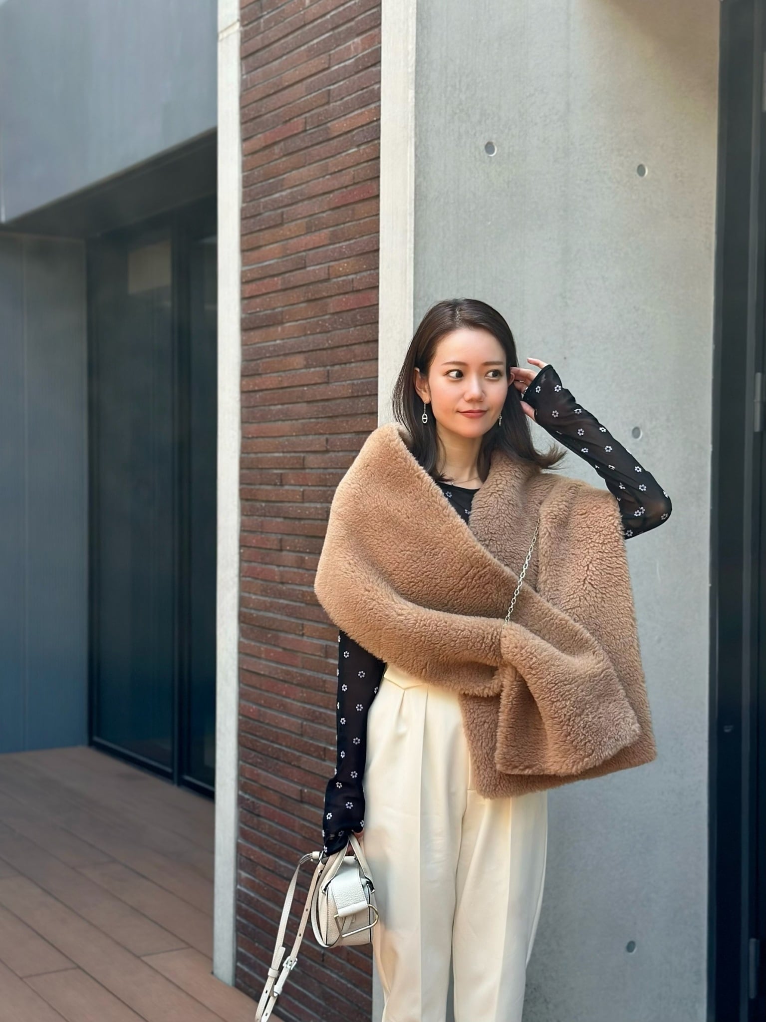 モコモコの素材感が女性らしいボア素材を使⽤したストールは、サラりと⽻織るだけでスタイリングのポイントになるアイテムです。ボアにゴールドチェーンを施すことで⼤⼈っぽく仕上げました。(チェーンは取り外し可能です)⾸元に軽くひと結びするだけで、スタイリングが完成します。素材はウール⾼混率の為、とても暖かく保温性に優れています。